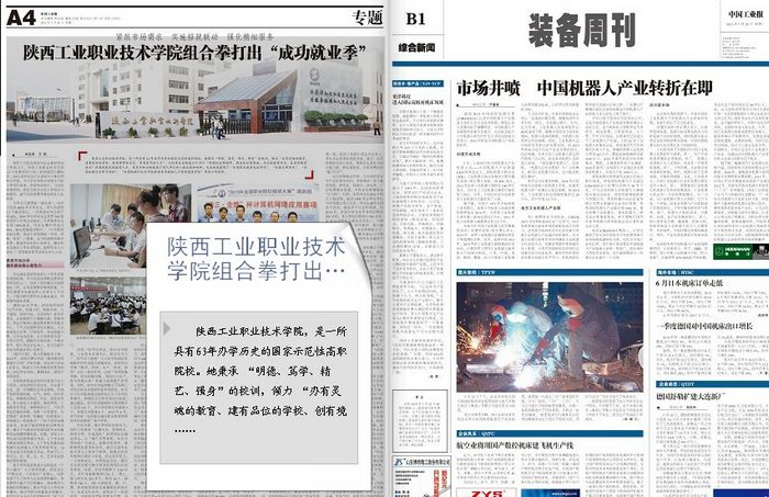 7月30日,《中国工业报》A4 版以《紧跟市场需求、实施招就联动、强化精细服务——陕西工业职业技术学院组合拳打出“成功就业季”》为题专版报道我院如何从“紧跟市场办学,提升就业核心竞争力”、“招生就业联动,健全就业工作长效机制”、“用心关注学生,提升就业精细服务水平”三个方面全力以赴做好毕业生就业工作,在严峻的就业形势下,将“最难就业季”转化为“成功就业季”。