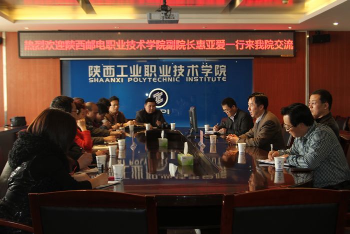 会上,王津副院长简要介绍了学院的基本情况,惠亚爱副院长介绍了陕西邮电职业技术学院的基本情况,双方围绕学校教学管理与改革、学生管理以及内涵建设、实训基地建设、师资队伍建设、三风建设、学生创新教育等方面进行了深入交流探讨。