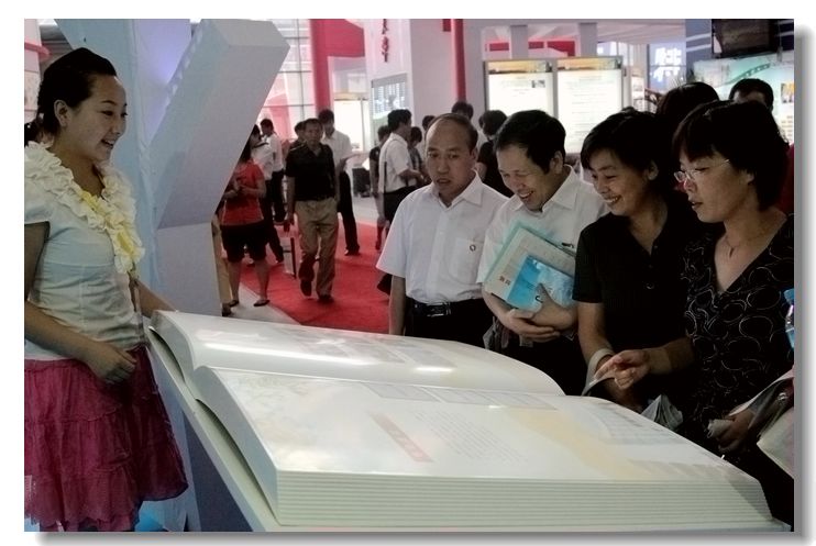 省教育厅厅长杨希文、教育工委副书记郝利生、教育厅副厅长郭立宏与我院崔岩院长、王天哲副书记在展会合影