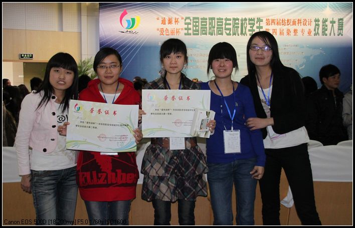 2011年10月15-17日,“通源杯”全国高职高专院校第四届纺织面料设计暨“爱色丽杯”全国高职高专院校第四届染整专业技能大赛在我院成功举行,我院选手在大赛中成绩喜人。