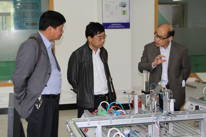座谈会后,谭文德部长一行在副院长王晓江、继续教育中心主任韩伟的陪同下参观了我院文化长廊、以及物流、数控、电气、机械、材料等实训基地。