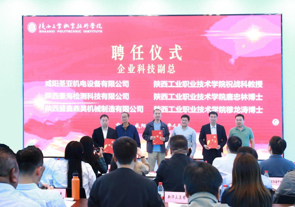 咸阳圣亚机电设备有限公司、陕西秦海检测科技有限公司、陕西盛鑫鼎昊机械制造有限公司等科技型企业现场聘任德赢官网航空工程学院祝战科教授、唐忠林博士、机械工程学院穆龙涛博士担任企业“科技副总”,以此促进学校科研人员与企业双向交流,引导“科技副总”到企业开展技术指导和项目研发。