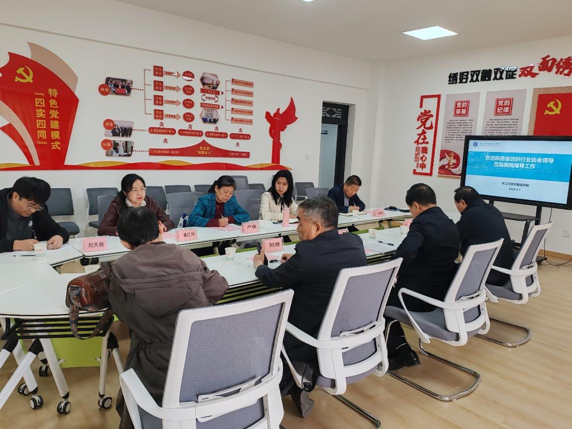 杨修国书记首先代表学院对协会领导的到来表示热烈欢迎,并介绍了近年来化工与纺织服装学院的专业布局与发展成果。刘迪院长详细介绍了学院的基本情况,介绍了纺织品检验与贸易专业的学生规模、招生质量及近年来毕业生在咸阳、西安等地纺织企业的就业情况,强调学院始终以“就业为导向、能力为本位”的育人理念,助力学生高质量职业发展。