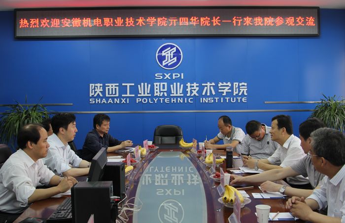 5月7日,安徽机电职业技术学院亓四华院长、组织人事处处长朱周义、校企合作处处长杨善义等一行5人来我院交流工作。