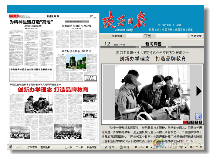 7月16日,陕西日报以《创新办学理念,打造品牌教育》聚焦我院特色办学实践,现将全文转载如下: 创新办学理念 打造品牌教育 “这是一所与共和国同生共长的职业技术院校,虽然地处西北,但是办学理念先进、办学特色...