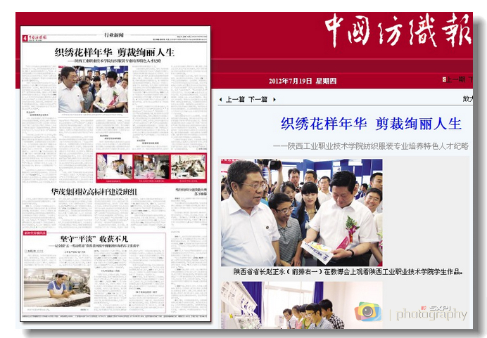 7月19日,《中国纺织报》以《织绣花样年华 剪裁绚丽人生》为题报道了我院纺织服装专业立足服务行业企业、培育高素质技能人才的特色育人纪实。