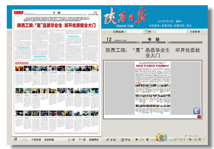 7月30日,《陕西日报》第12版以《陕西工院:“高”品质毕业生叩开优质就业的大门》为题,辅以30位优秀校友的图文介绍,全景展现了我院培养综合素质高、技能水平高、就业质量高的高品质技能人才的特色之路: 关中之...