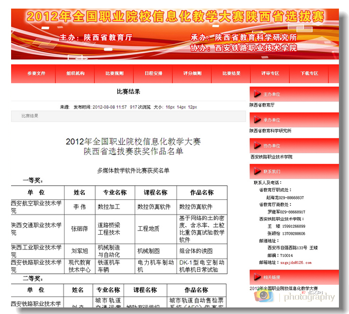8月8日,2012年全国职业院校信息化教学大赛陕西省选拔赛成绩揭晓。