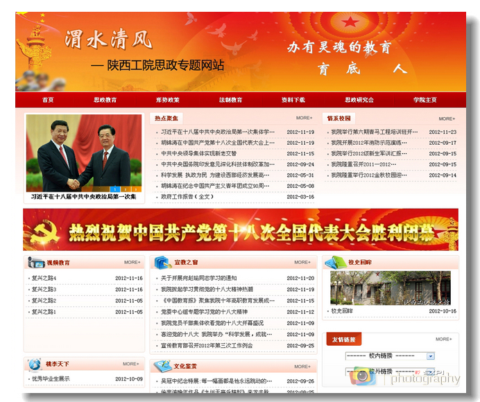 为加强中国特色社会主义理论体系宣传教育,进一步完善互联网的教育、引导、服务功能,营造浓厚校园文化氛围,我院新版思想政治教育专题网站“渭水清风”已于近日正式上线运行。