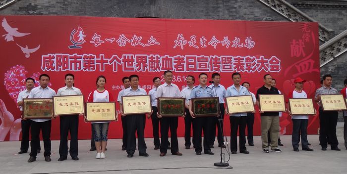 6月14日,由咸阳市委宣传部、咸阳市军分区后勤部、咸阳市文明办、共青团咸阳市委、咸阳市红十字会、咸阳市献血管理委员会和咸阳市卫生局联合主办的咸阳市第十个世界献血者日宣传暨表彰大会在咸阳钟楼广场举行,今年献...