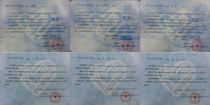 近日,陕西省大学生志愿服务西部计划项目管理办公室正式下发录取确认通知书,我院司雨、韩晔、王官鹏、樊沛霄、王鹏、陈富发6名同学光荣入选2013年西部志愿者计划。