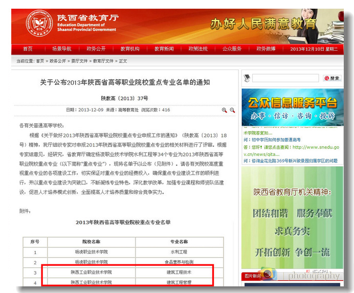 近日,根据省教育厅陕教高2013年37号、39号通知精神,我院建筑工程技术、建筑工程管理两个专业被确定为“陕西省高等职业院校重点专业”,会计电算化实训基地被确定为“陕西省高等职业教育示范性实训基地”。