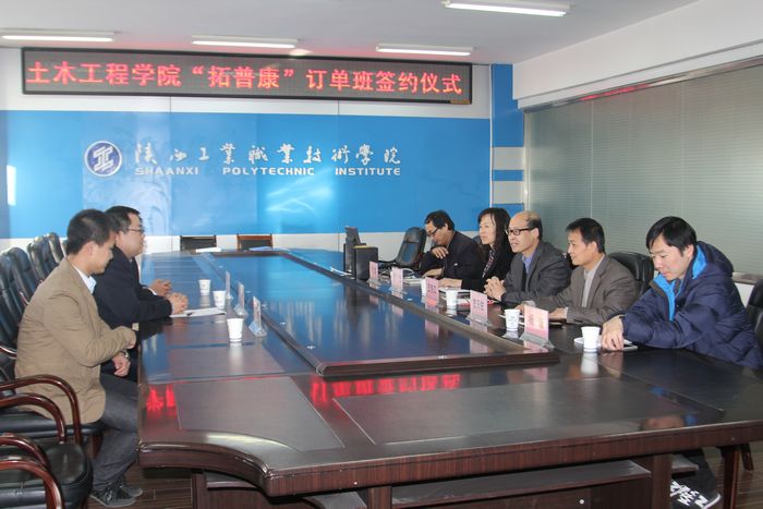 11月28日上午,我院与陕西拓普康商贸有限公司联合举办的“拓普康”订单班签约仪式在崇文楼10楼第四会议室举行。