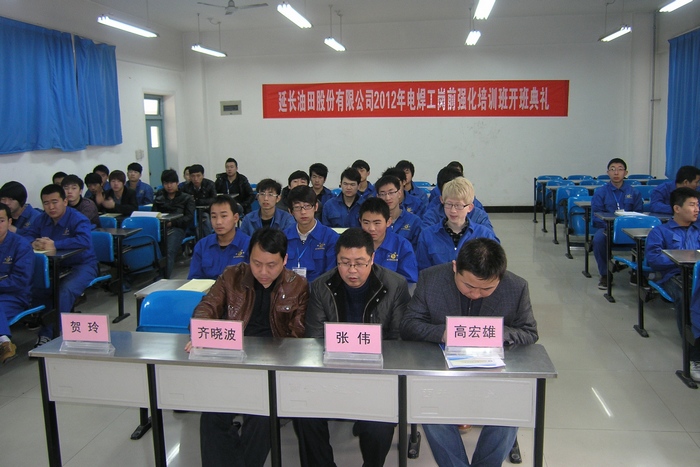 3月12日上午,西安石油大学委托我院实施的“2012年延长石油集团电焊工岗前培训班”正式开班,延长石油集团公司49名员工将在我院接受为期49天的技术培训。